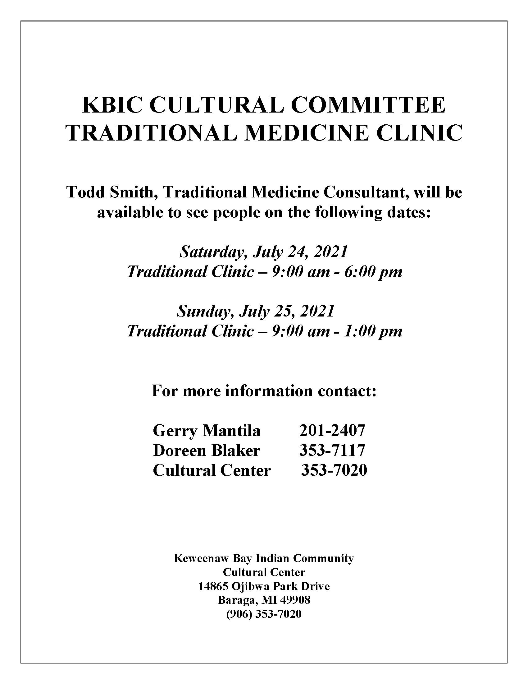 Traditional Medicine Clinic - July 2021