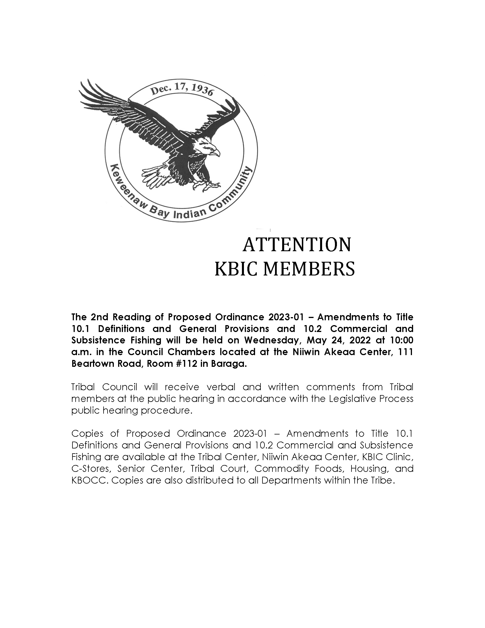 The 2nd Reading of Proposed Ordinance 2023-01