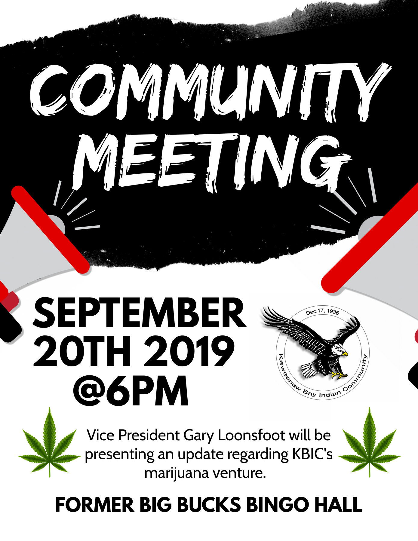 Vice President Gary Loonsfoot will be presenting an update regarding KBIC's marijuana venture. At the former Big Bucks Bingo hall.