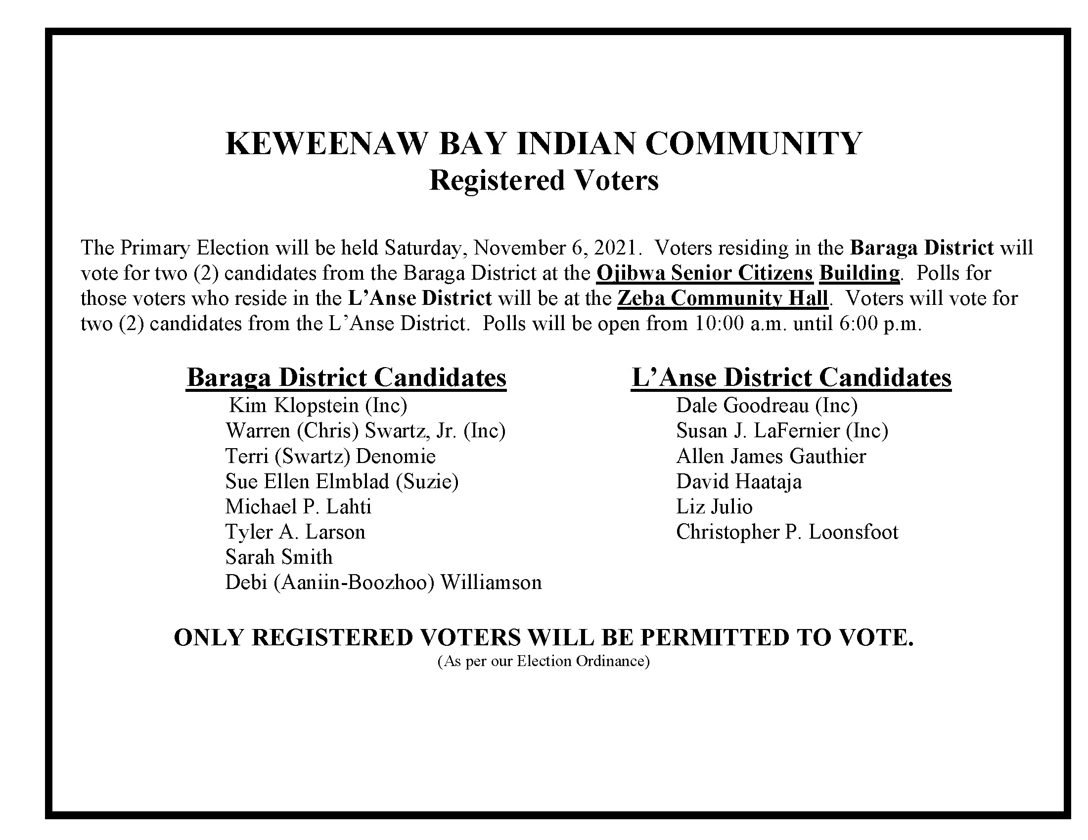 KBIC Primary Election 2021