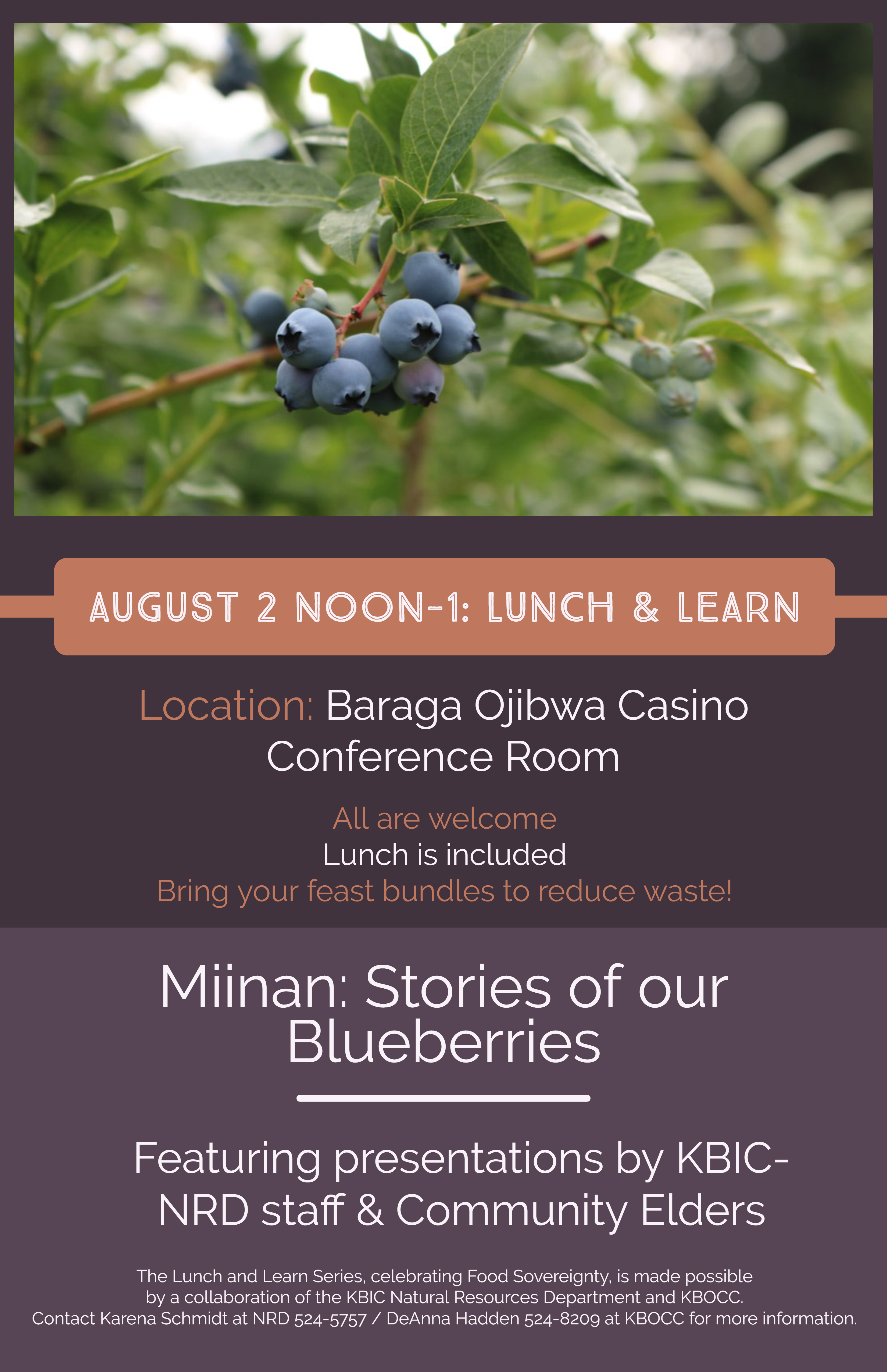 August 2nd, Noon - 1pm. Lunch & Learn at the Baraga Ojibwa Casino Conference Room.