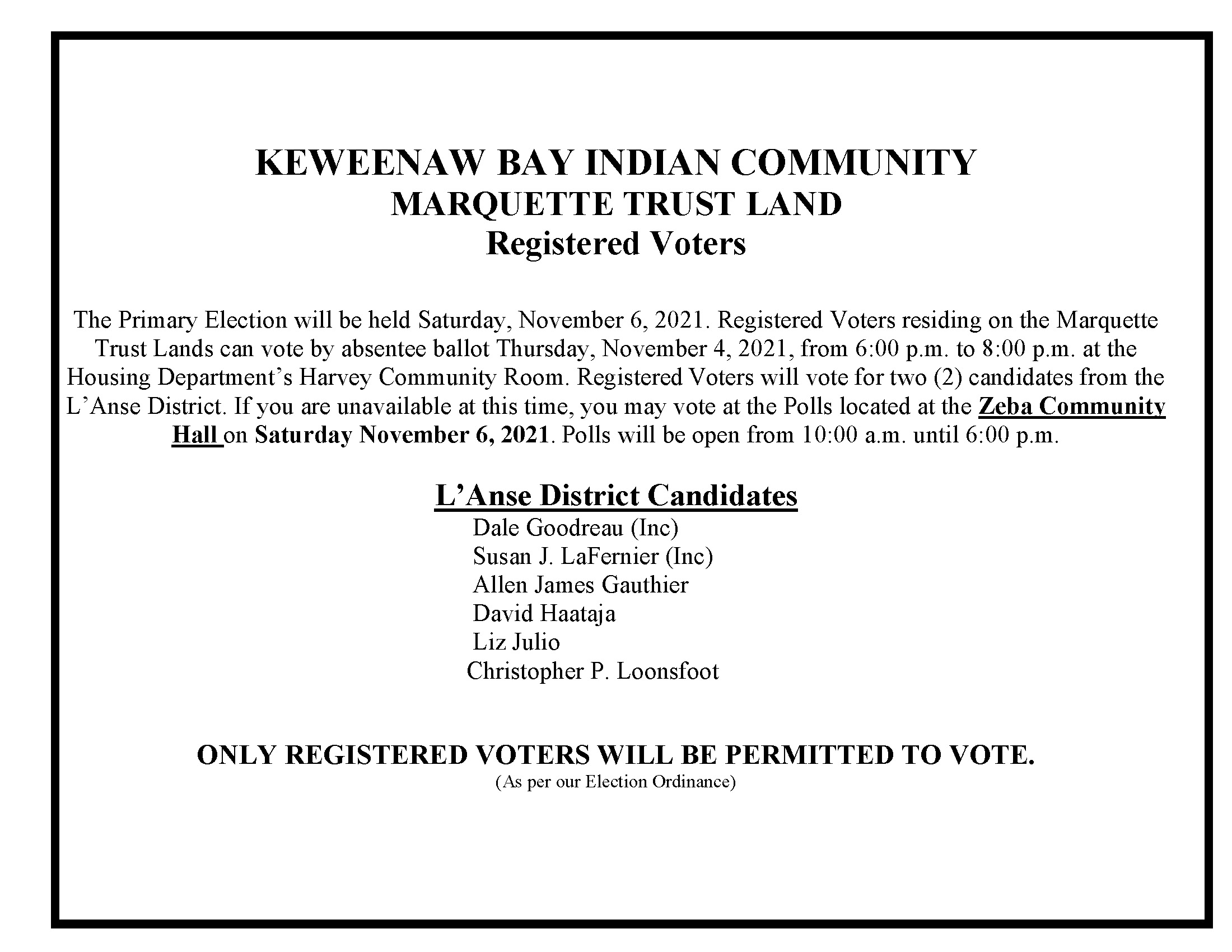 Marquette Trust Land Registered Voters